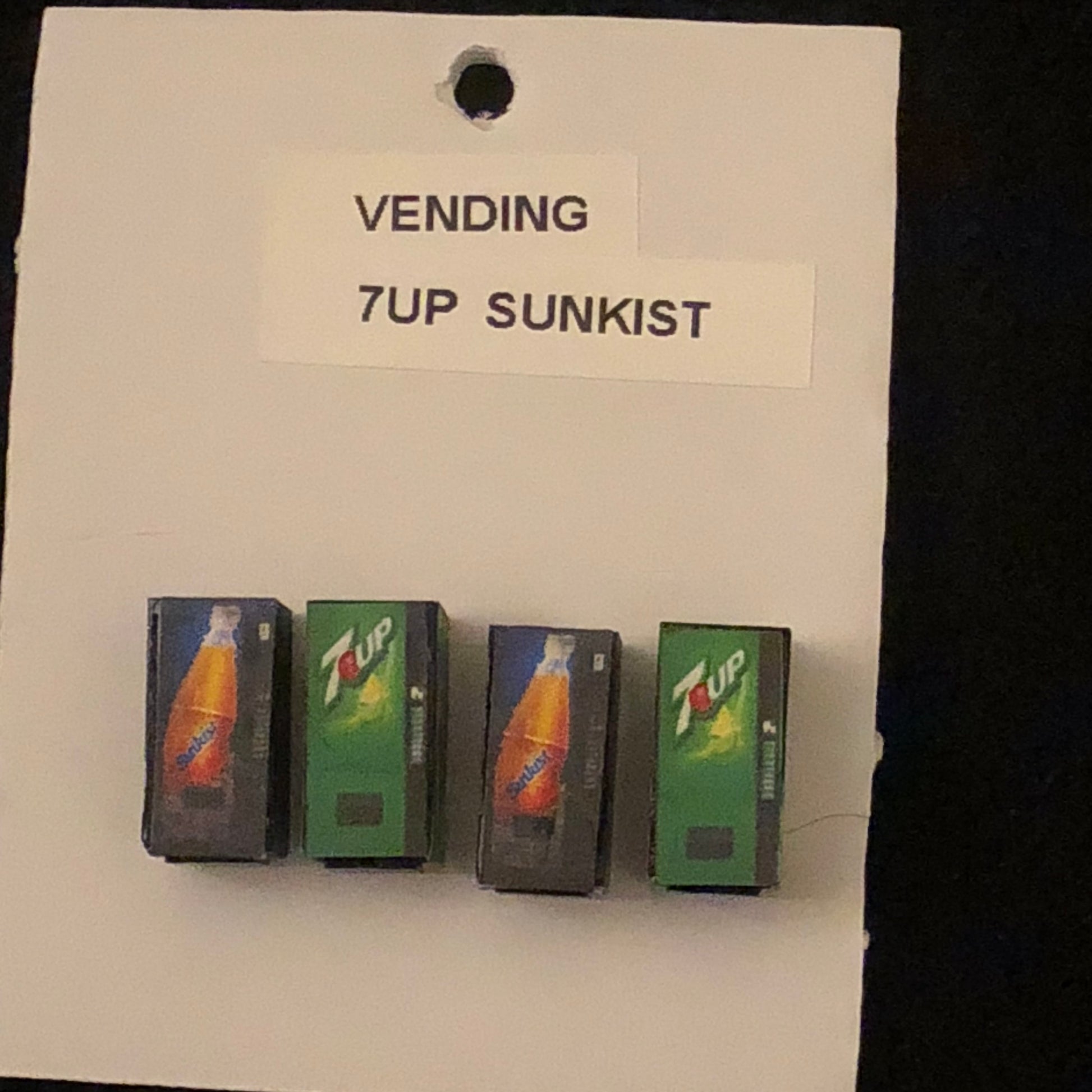 Add some flavor to your HO scaled model railroad scene with 7 Up & Sunkist Vending Machines. Comes in a package of 2 for double the fun. Perfect for adding a touch of realism and nostalgia to any layout. (Note: Vending machines do not dispense actual sodas. Sorry, folks!)