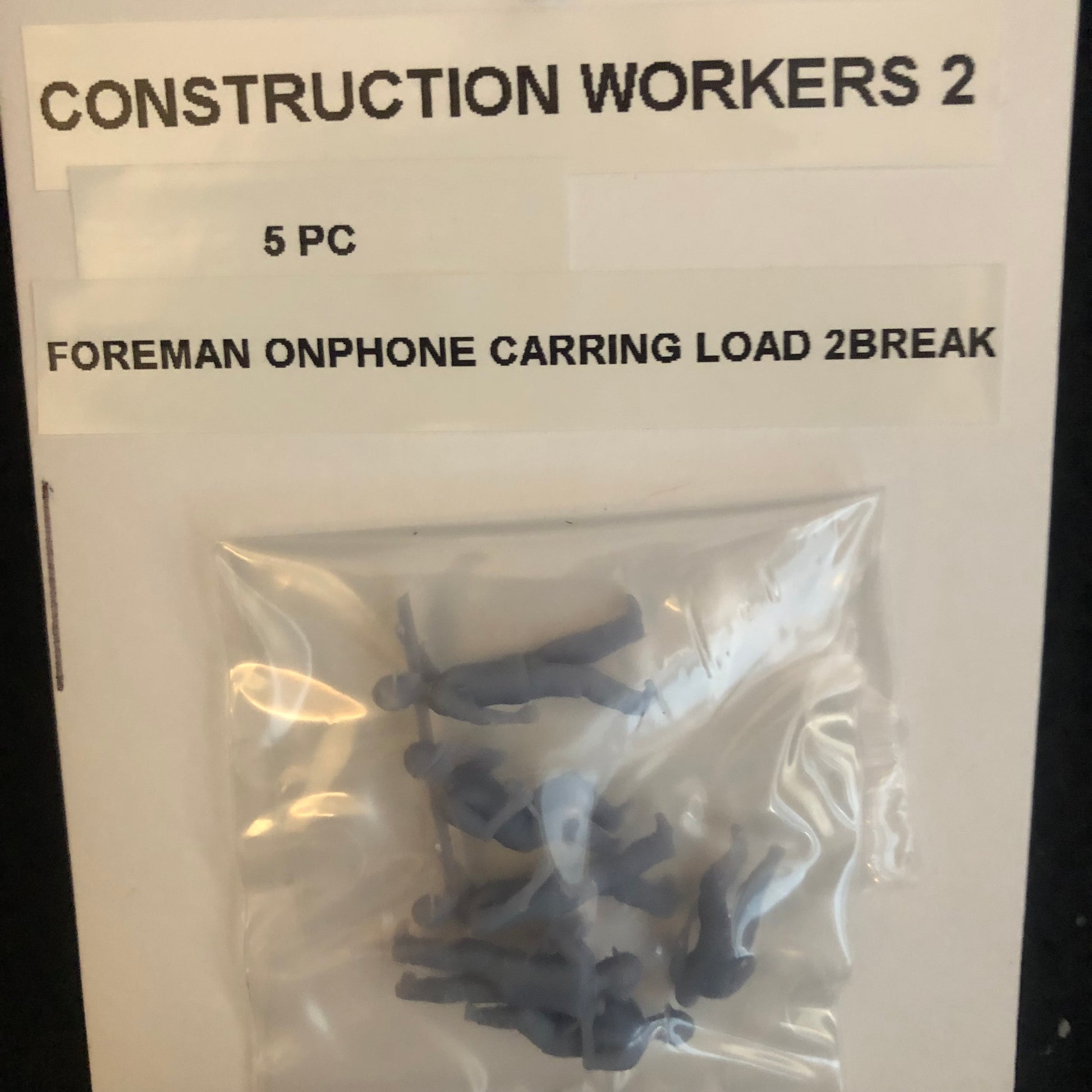 "Add some life to your model railroad scene with this package of Construction Workers 2. Watch these figurines as two take a break, one chats on the phone, and the foreman oversees the two carrying a load of lumber. Perfect for a realistic touch! (Keep up the good work, boys!)"