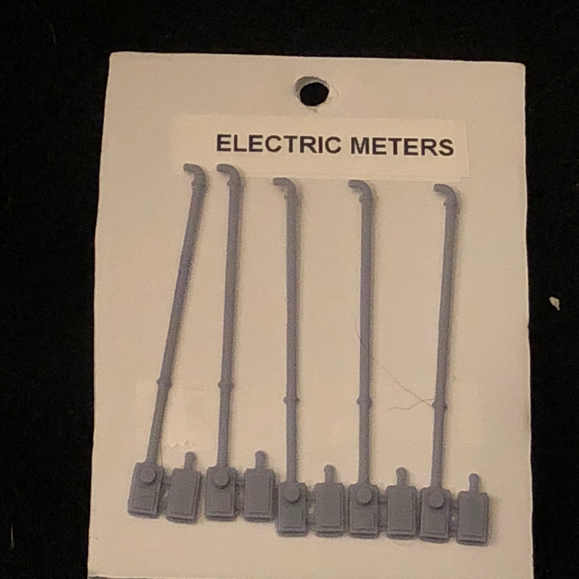 "Get ready to power up your model railroad buildings with our Electric Meters! This package includes 5 Ho scale meters for added realism. Don't let your buildings go without electricity. (But don't worry, it's all pretend anyway!)"