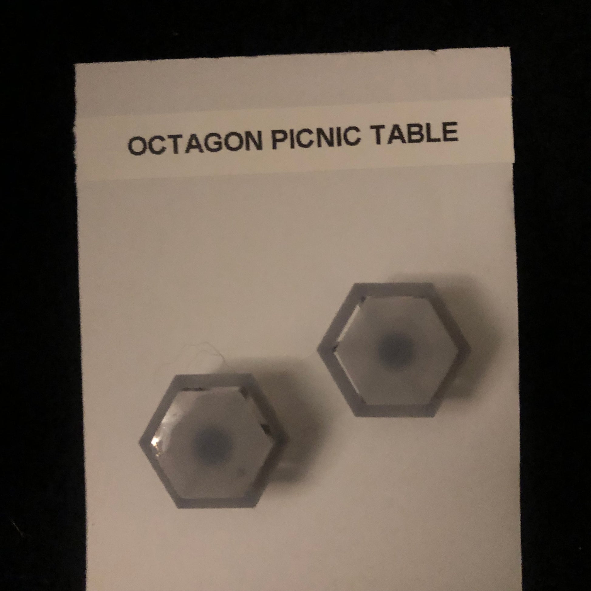 "Add a touch of whimsy to your Ho scale model railroad with our Octagon Shaped Picnic Table! Each package includes two unique tables, perfect for outdoor gatherings and scenic displays. Bring some fun and flair to your miniature world with our Octagon Picnic Tables ."