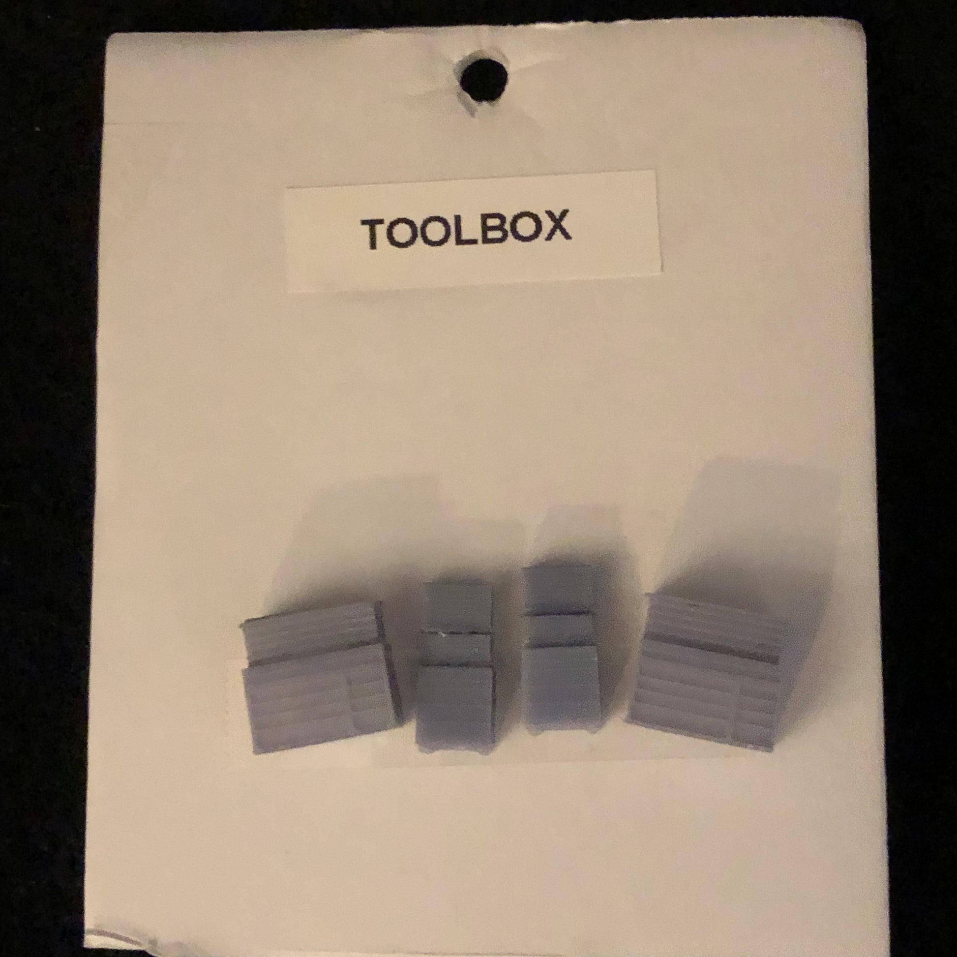 "Get your model railroad home organized with our Ho scale Tool Boxes! Each package comes with 1 top and 1 bottom box for all your tiny tools. Keep your railroad running smoothly with this handy addition. (Choo-choo-choose us!)"